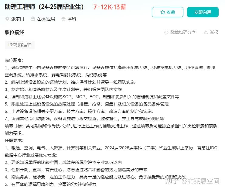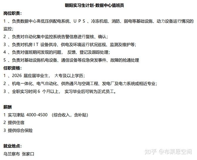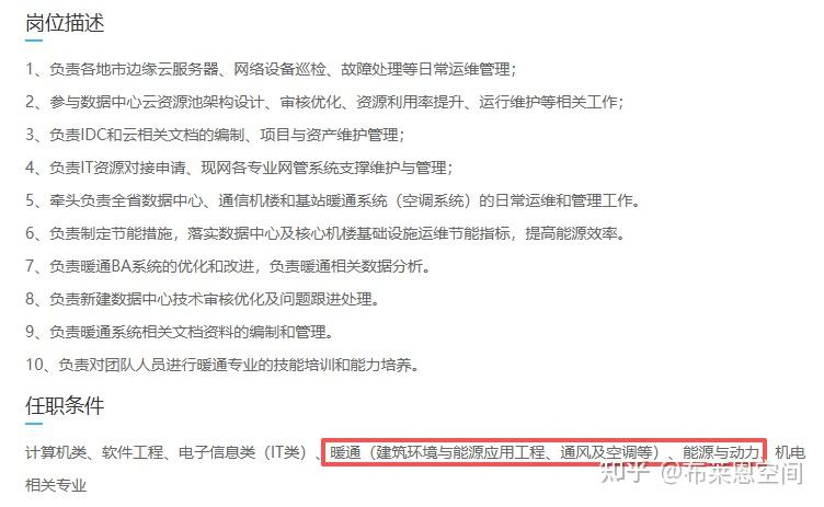 秋招进行中!本期继续为大家带来数据中心岗位汇总合集3.0版本~ 往期推文: 本期所涉及的方向是-运营商数据中心相关岗位,部分岗位可内推 其中三大运营商涉及的土木类岗位,小伙伴们千万别错过哦~ 岗位目录 三大运营商